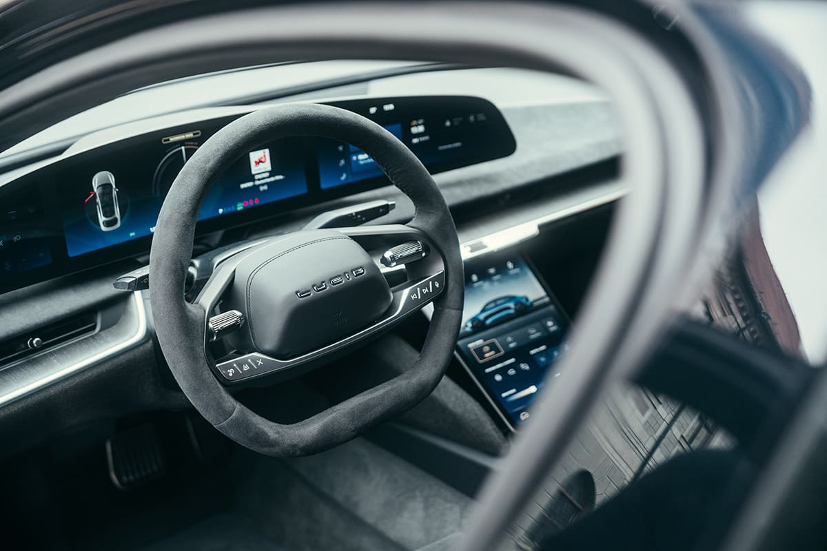Tra i protagonisti della manifestazione spicca la Lucid Air Sapphire, l’auto elettrica di lusso che combina prestazioni estreme e tecnologia all’avanguardia. Sedili, volante, plancia e cielo sono rivestiti in Alcantara, offrendo un’esperienza tattile e visiva senza pari.