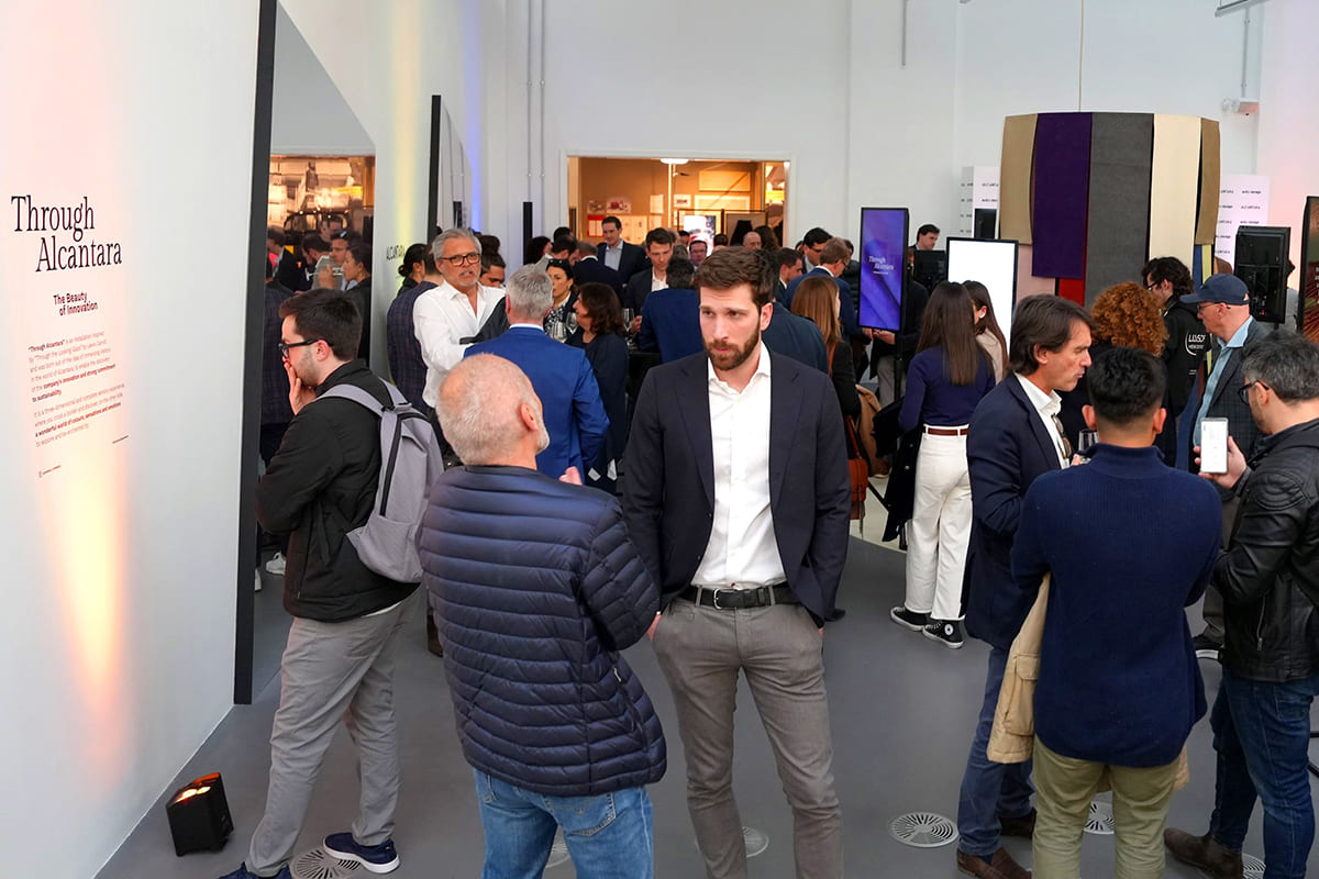 Così tramite l’allestimento gli ospiti sono invitati ad entrare nel mondo Alcantara per scoprire l’unicità e l’innovazione del brand unite ad un serio e certificato impegno in materia di sostenibilità.